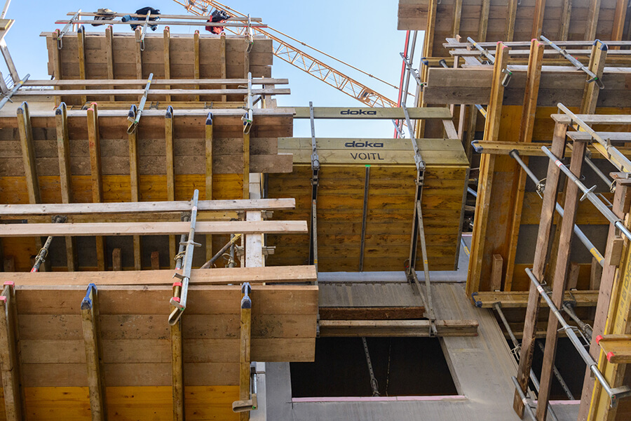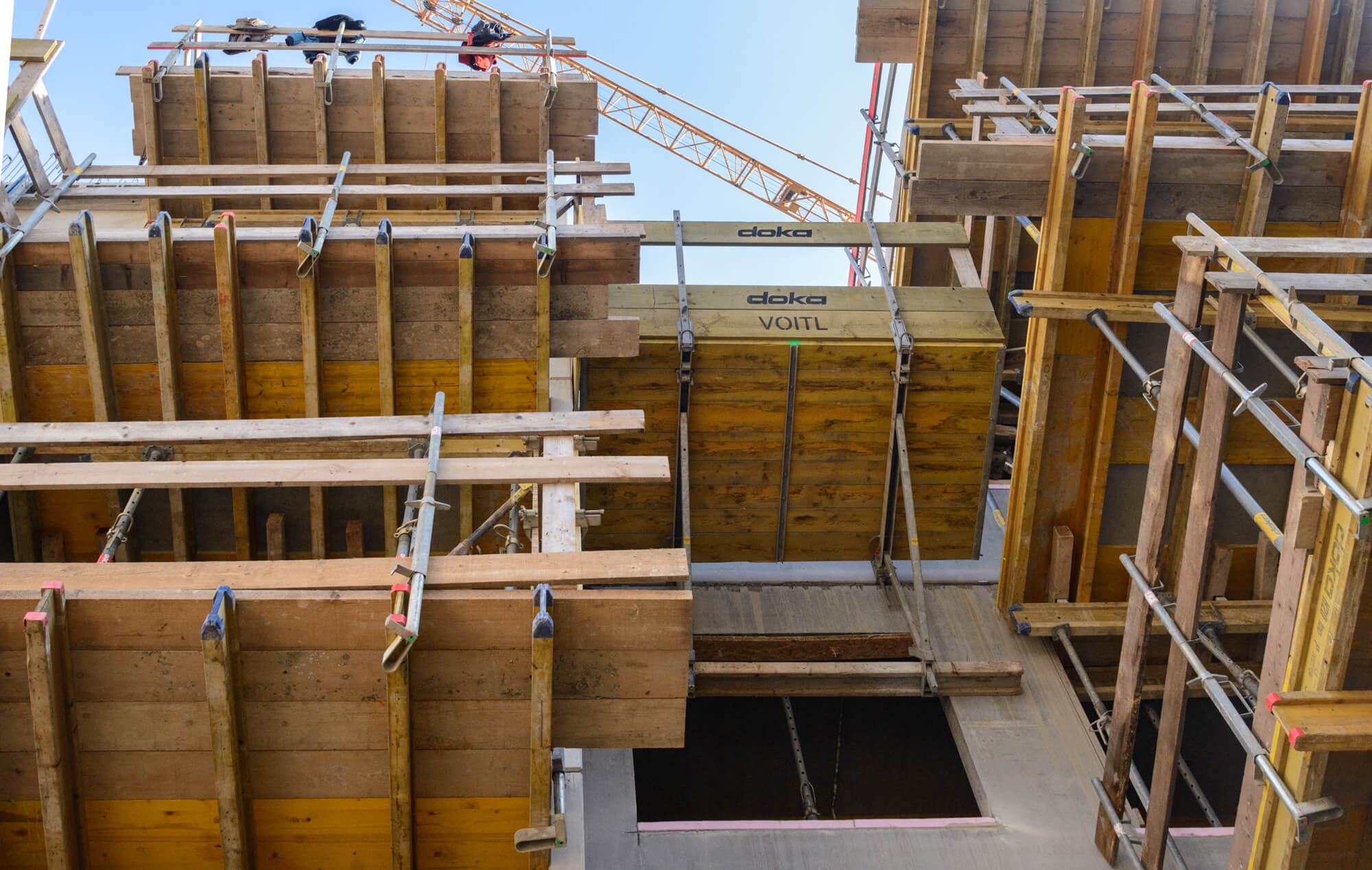 Die Voitl & Co. BaugesmbH errichtet als Generalunternehmer in der Erdbergstraße 216 A in 1030 Wien auf 2 Bauplätzen eine Wohnhausanlage in Stahlbetonbauweise als Teil eines aus insgesamt 5 Bauplätzen bestehenden Wohnbauvorhabens. Die Anlage besteht aus 9 bzw. 12 Obergeschoßen für 189 Wohneinheiten bzw. 9 Geschäftslokalen (Ateliers) im Erdgeschoß und einem Untergeschoß mit einer Tiefgarage für 100 Stellplätze. In allen Wohnungen sind Loggien, Terrassen oder Balkone vorgesehen.