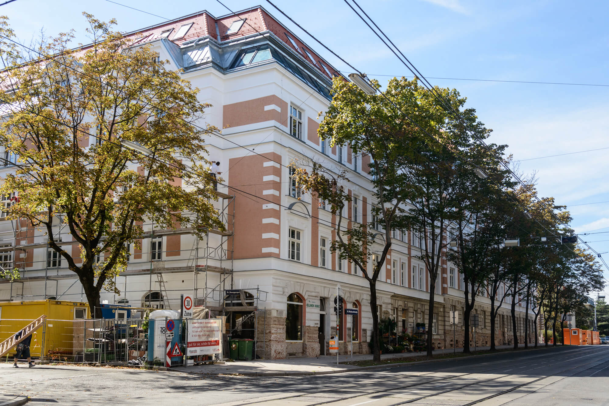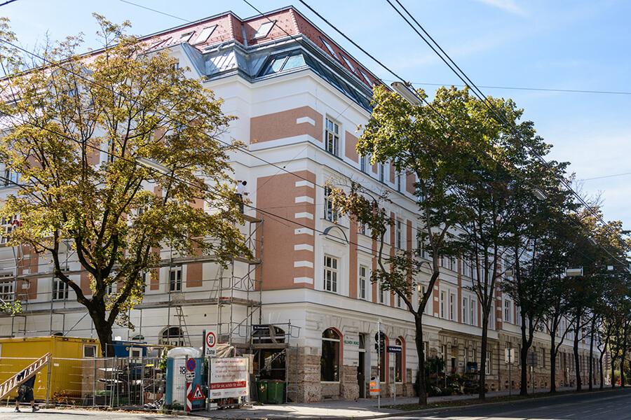 Im Mittelpunkt der Arbeiten steht die thermisch-energetische Sanierung, bei der alle Fassaden unter Zuziehung des Bundesdenkmalamtes neu hergestellt werden, wobei der Erhaltung der Gesamtcharakteristik (Gesimse, Sockelausbildung, Klinkerfassaden) besonderes Augenmerk geschenkt wird.