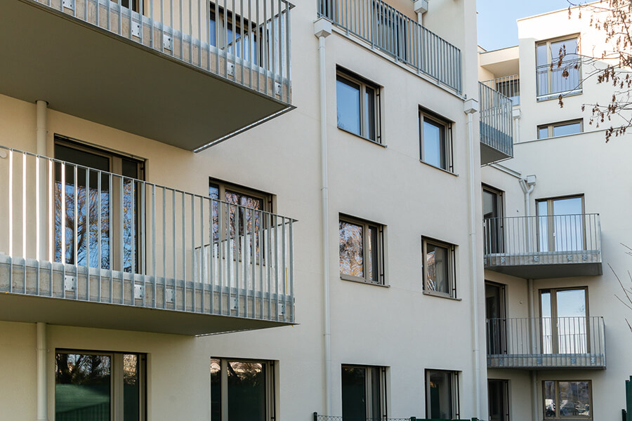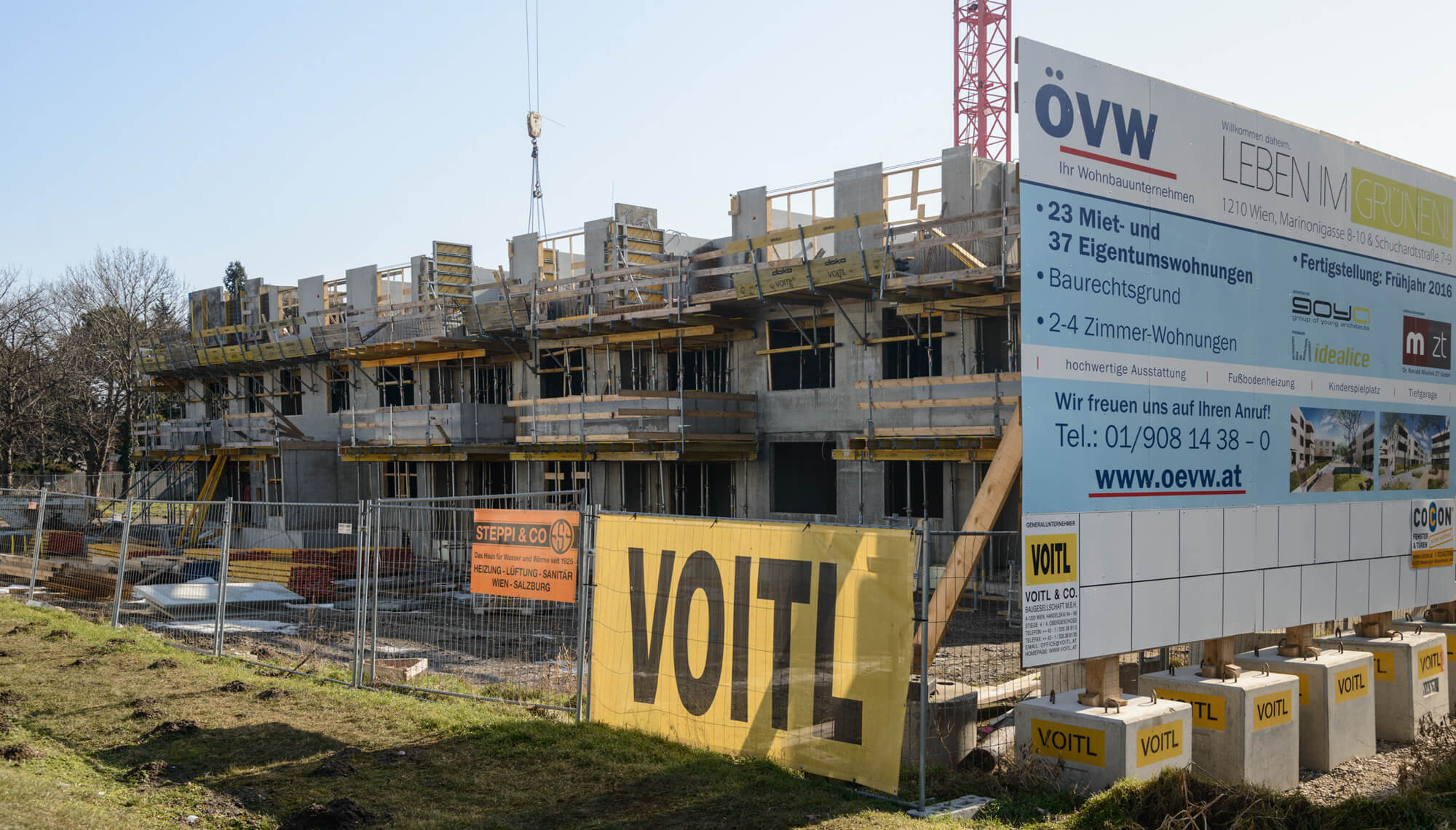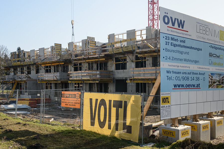 Am Rande von Wien errichtet Voitl & Co. die durch die ÖVW freifinanzierte Wohnhausanlage "Marinonigasse 8-10", mit 37 Eigentums- und 23 Mietwohnungen.