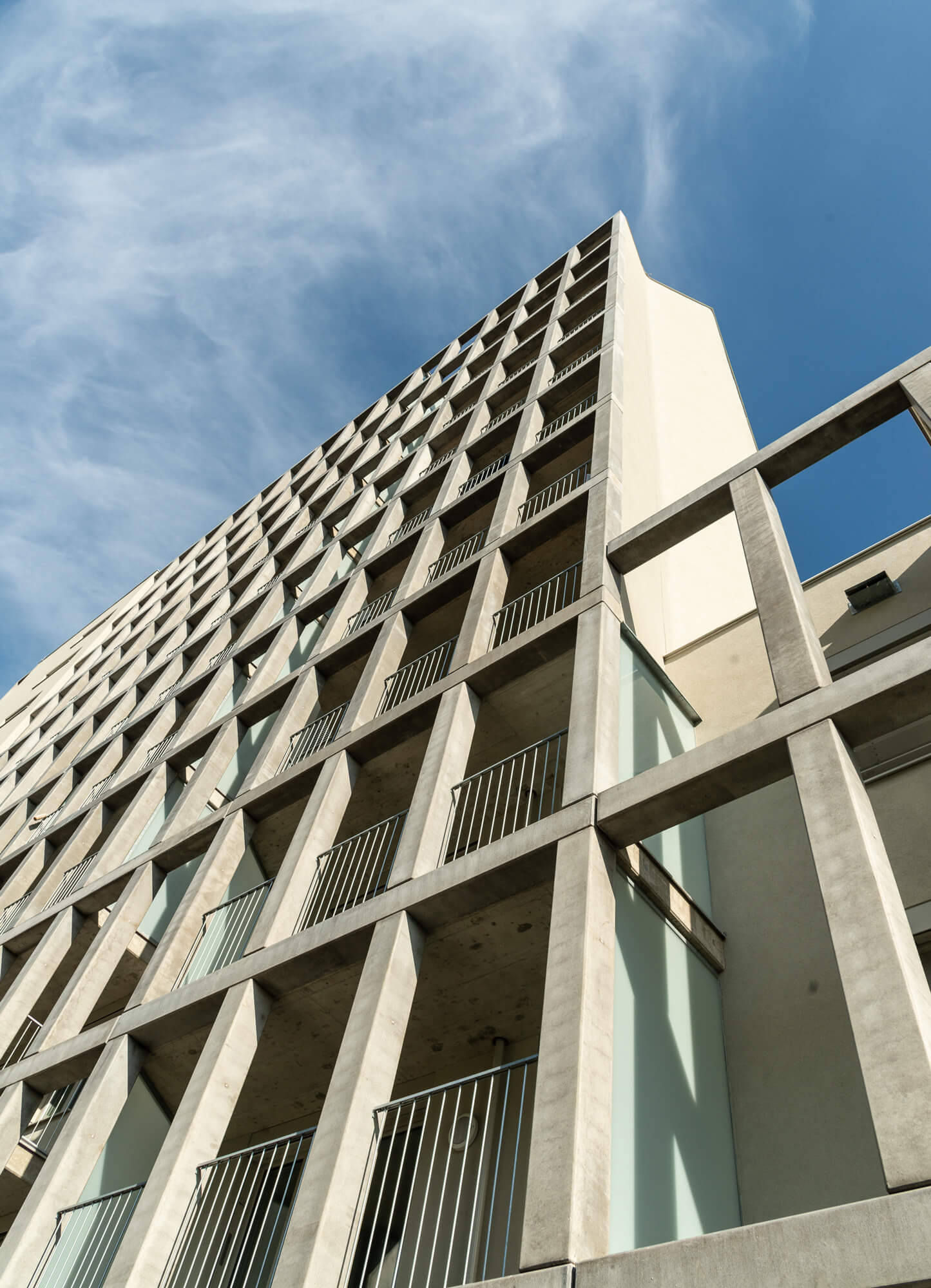 Die in Stahlbetonbauweise errichteten Gebäude erstrecken sich ab dem 2.Obergeschoß in Form von 3 Türmen insgesamt 11 Stockwerke in die Höhe. Erschlossen werden alle 3 Bauteile separat über ein eigenes, zentral situiertes Stiegenhaus.