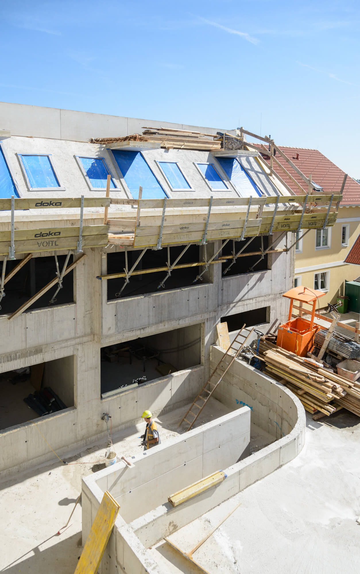 Nicht zuletzt werden auch bei allen Balkonen und Terrassen die Beläge und Geländer erneuert. Trotz der umfangreichen Arbeiten und einer kurzen Bauzeit gewährleistet Voitl & Co., dass der Betrieb des sich in der Wohnhausanlage befindlichen Supermarktes reibungslos weitergeführt werden kann.