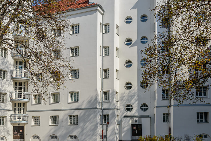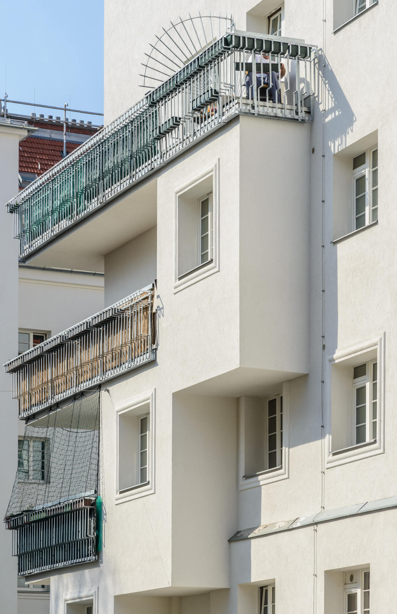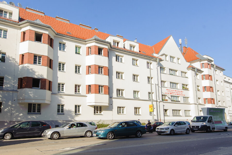 Die architektonisch bemerkenswerte städtische Wohnhausanlage Nr. 16 – 18 wurde 1926/27 von den Architekten Rudolf Frass, Rudolf Perco und Karl Dorfmeister errichtet. Im zur Straße hin offenen Innenhof befinden sich zwei Plastiken Knabe mit Bär und Mädchen mit Gänsen von Wilhelm Hejda (1929). Der anschließende Baublock Nr. 20 wurde zur gleichen Zeit von Camillo Fritz Discher und Paul Gütl errichtet. Dieser Bauteil zeigt verschiedene expressionistische Bauelemente, wie Spitzgiebel, Polygonalerker und Klinkerfelder.
